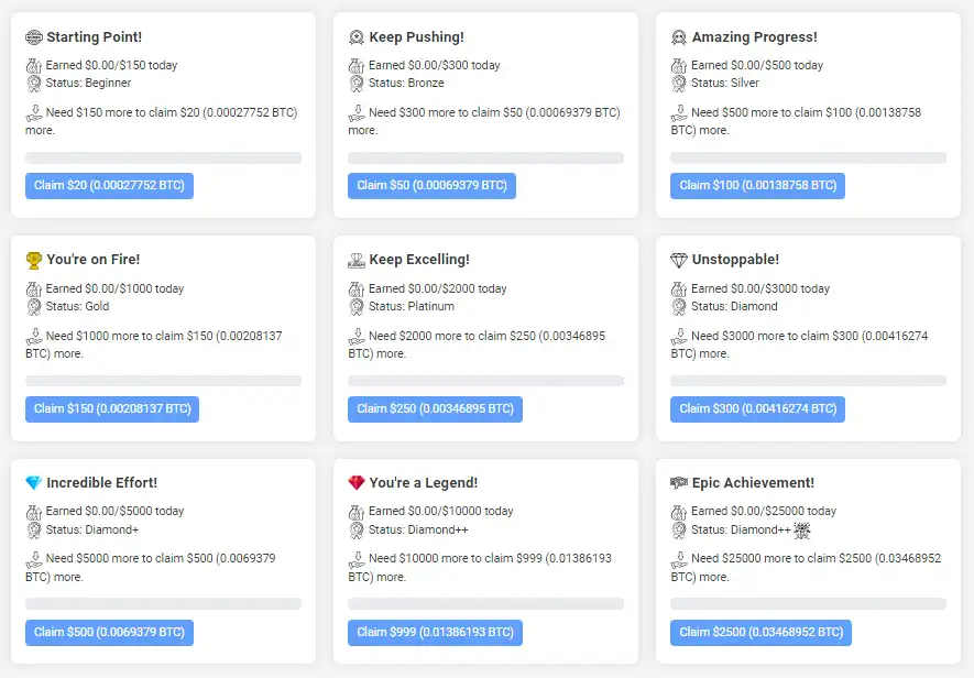 После регистрации присваивается достижение: Beginner с 80% отчислениями в вашу сторону, после 15 оплат за все время присваивается Bronze, и так далее (Скриншоты закрепил для наглядности), всю систему достижений можно увидеть в своем партнерском профиле.