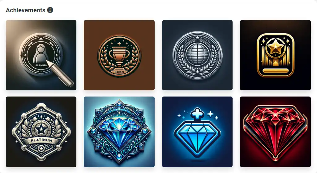 Прогресс-бары: Они предназначены для каждого достижения, помогая отслеживать прогресс и приближение к следующему уровню.