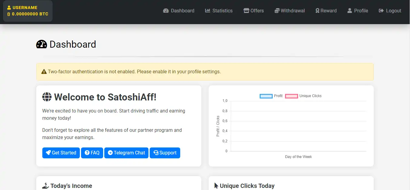 Партнерский кабинет: Сразу после регистрации и одобрения Вы попадаете на страницу дашборда.