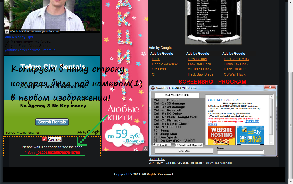 Когда зашли на страничку мы листаем ниже и видим в нижнем левом углу экрана написано Get key нажимаем на него и нам высвечивается код активации мы его копируем в нашу строку под номером (1)