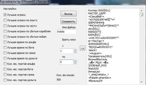 Извлекает из топа списки Ников ( очень полезно для брута ).