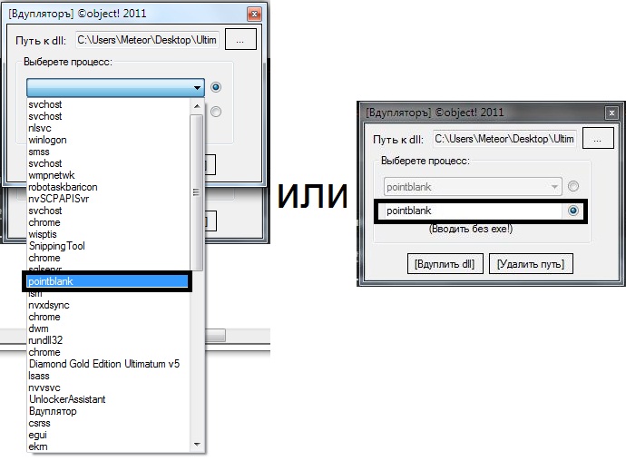 Почти для всех ижекторов нужен видимый процесс pointblank.exe