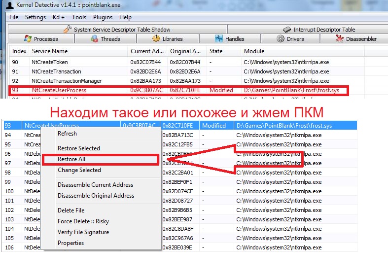 1) Открываем программу, ищем процесс pointblank.exe, один раз по нему кликаем и переходим во вкладку Libraries
