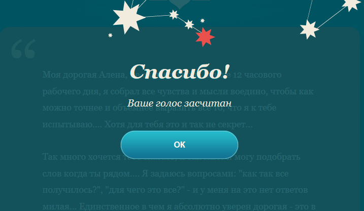 Может, если у кого то есть много друзей(подписчиков вк, или группа своя) и моя просьба не идет вразрез с вашими убеждениями, разместит(поделится) ссылкой с сайта с просьбой проголосовать, я буду очень, очень благодарна, потому что лайков для победы нужно очень много...