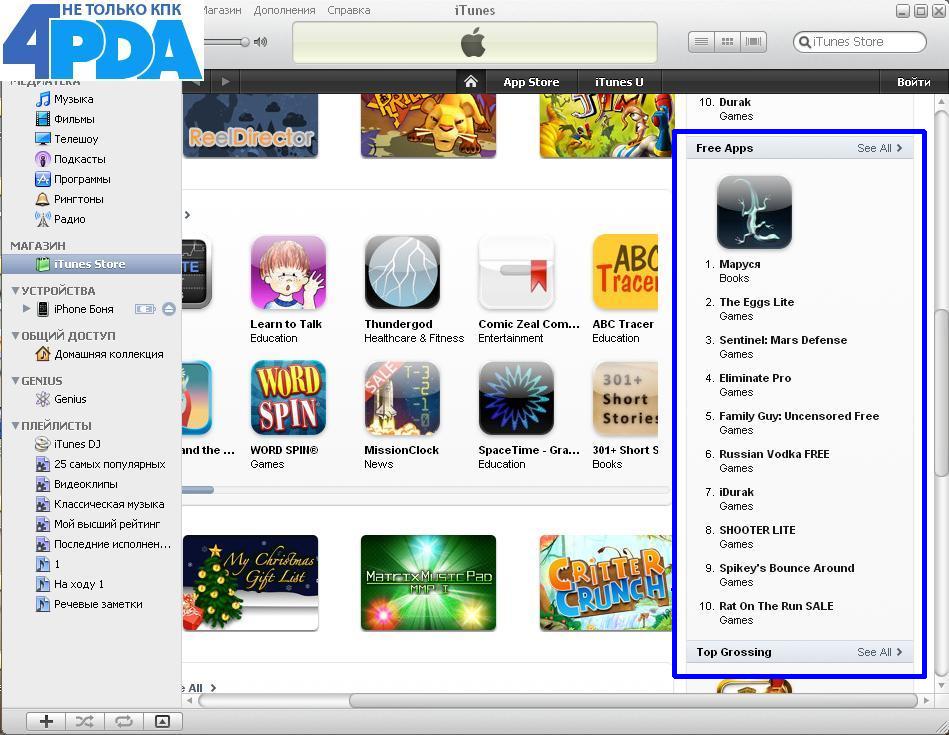 4) Выбираем в Top Free Apps (справа по середине) любое приложение и кликаем по нему.