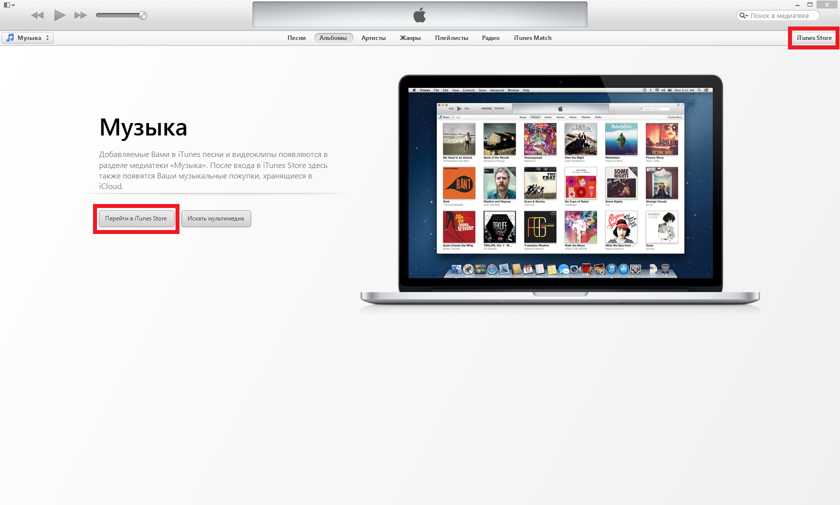 1) Включаем iTunes. И нажмаем на кнопку "iTunes Store" или "Перейти в iTunes Store"
