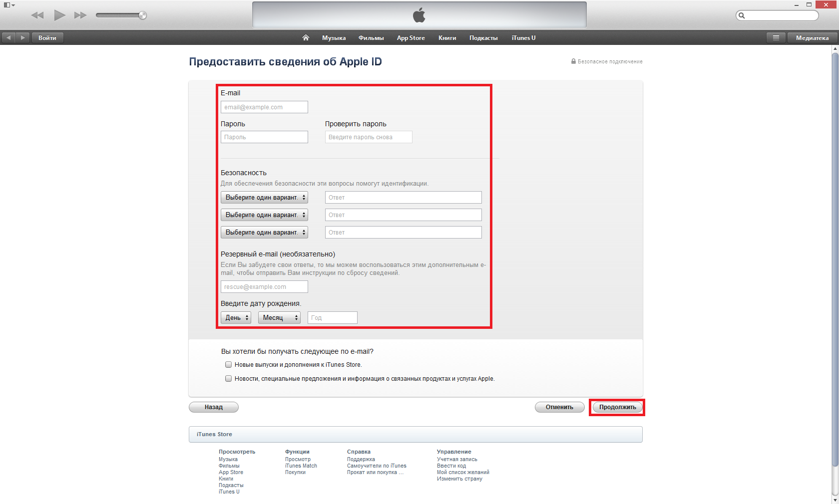 8) Заполняем анкету (желательно использовать популярные мировые почтовые сервисы), нажимаем "Продолжить"