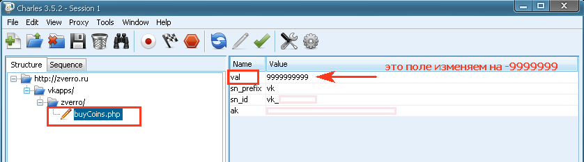Открываем Charless, запускаем приложение. В чарлике нам понадобится запрос http://zverro.ru . В игре покупаем валюту, а именно покупаем золото за алмазы