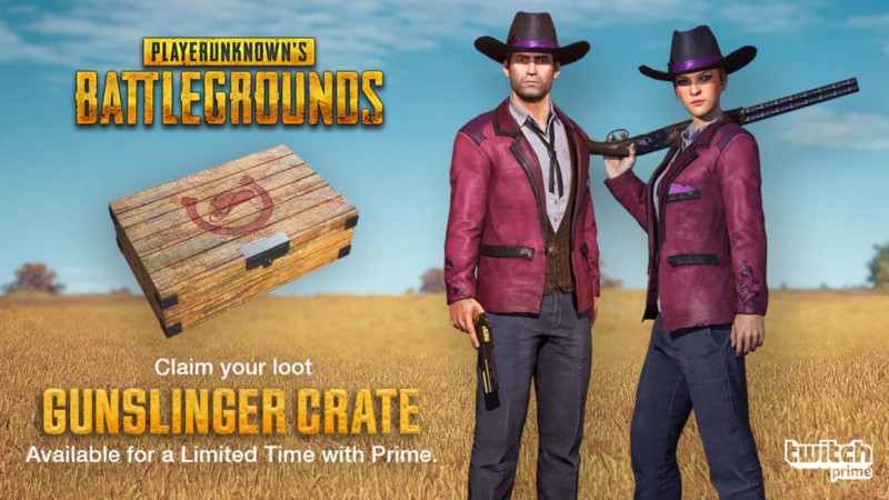 Twitch Prime PUBG GUNSLINGER SET, JUNGLE SET, PILOT SET, SPA Day Set Crate