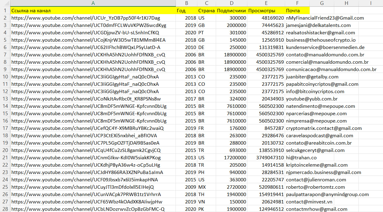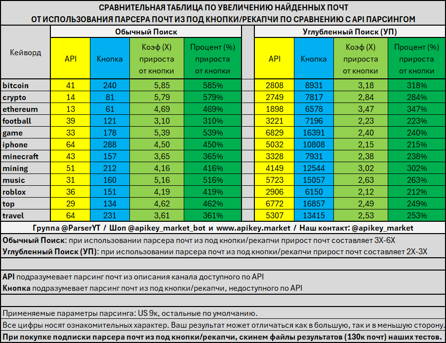 Парсер почт YouTube API из под КНОПКИ / рекапчи + Углубленный поиск