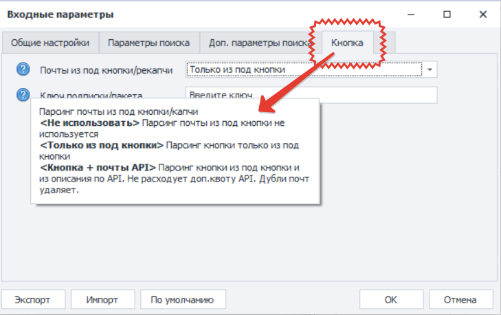 - Доп. параметры поиска (расширенный поиск для получения доп.почт):