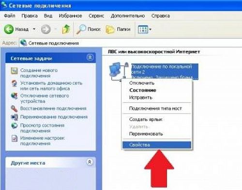 Панель управления / Сетевые подключения / Щёлкнуть правой клавишей на ваше подключение и открыть его Свойства