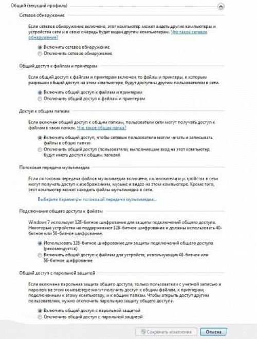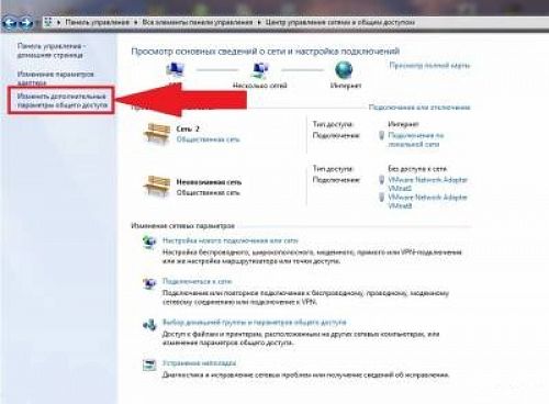 Панель управления / Центр управления сетями о общим доступом / Изменить дополнительные параметры общего доступа