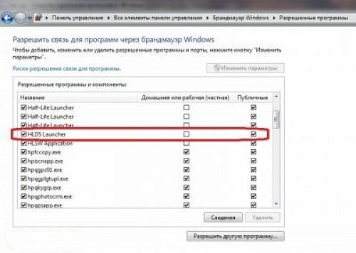 Так же, если у вас включен брендмауэр Windows, необходимо разрешить запуск HLDS.exe через Брендмауэр: