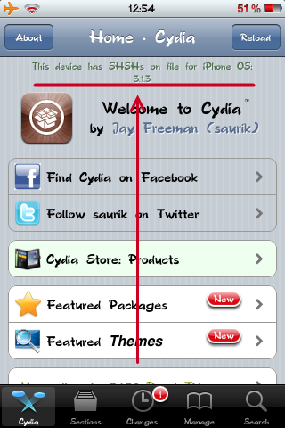 10/24/2010 22:14:12.661 You have saved your SHSH locally and the request was sent to CYDIA. This means that CYDIA DOES have your SHSH. Do NOT bug semaphore about the Cydia home page showing this version.