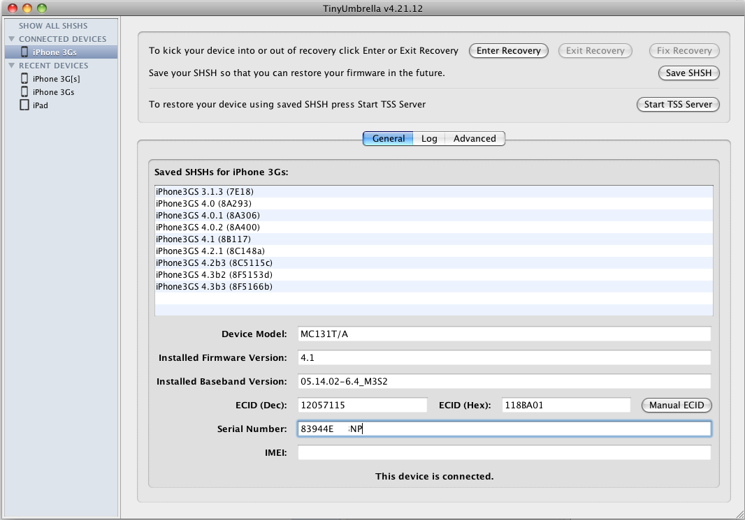 10/24/2010 22:12:10.526 Started saving SHSHs for [iPhone 3Gs]