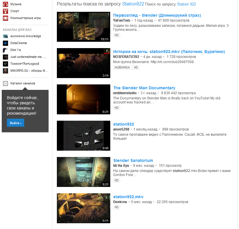 Ещё в году 2011 в сети появилось одно из так называемых «видео с непонятным существом». Называлось видео «Station 922.mkv». Сам видеоролик по продолжительсти был меньше минуты и в нём было заснято неизвестное науке существо, спускающееся с крыши московской многоэтажки на длинных, вытягивающихся конечностях. Качество видео не позволяет разглядеть существо, но сам характер его перемещений, чуждого земной биологии движения, и неестественно вытягивающиеся конечности дают основание предположить, что видео не сфабриковано (не «фейк», как говорят в Интернете). За несколько плавных движений на вытянутых конечностях существо попадает с крыши дома на асфальт перед ним. Потом слышится крик оператора: «Оно видело меня!» — и видео прерывается. Согласно новой городской легенде, в районе, где было заснято это видео, пропадали люди.