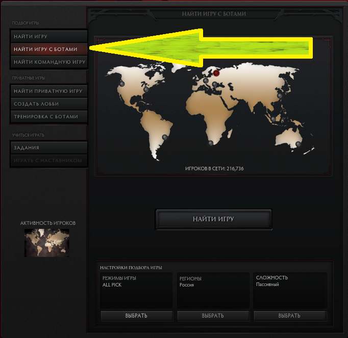 По умолчанию Играем против ботов [получаем опыт, вещи]