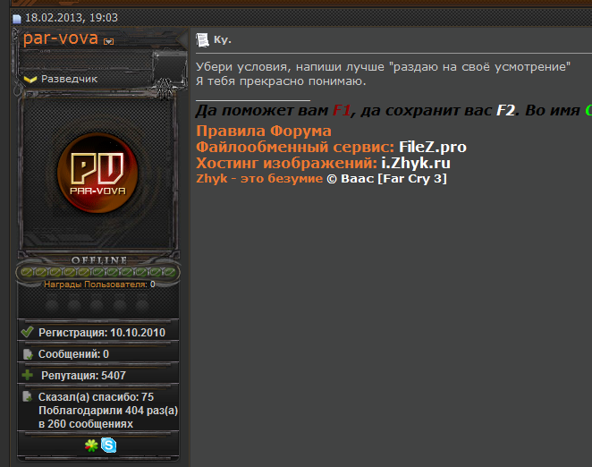 "Требование "от 10 постов" или "от 100 постов" или "только людям с хорошей репутацией" считается как попытка обменять свой товар на спасибо или репутацию, соответственно считается прямым нарушением пункта 28 правил форума, и наказывается блокировкой аккаунта на 3 недели." - это правило мне вообще непонятно, почему обязательно обменять??? Это, как раз, значит, что этот человек хочет поставить хайд на то, что раздаёт, а это на жуке запрещено... или нет?