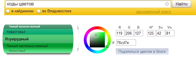 - Прописываем код цвета (некоторые коды будут представлены ниже)