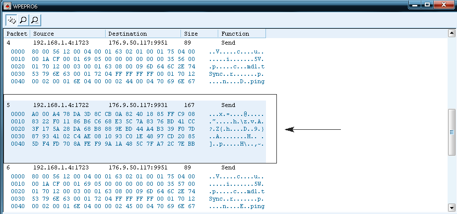 все пакеты заканчиваются словом ping, а нам нужен тот другой (пример на скрине).