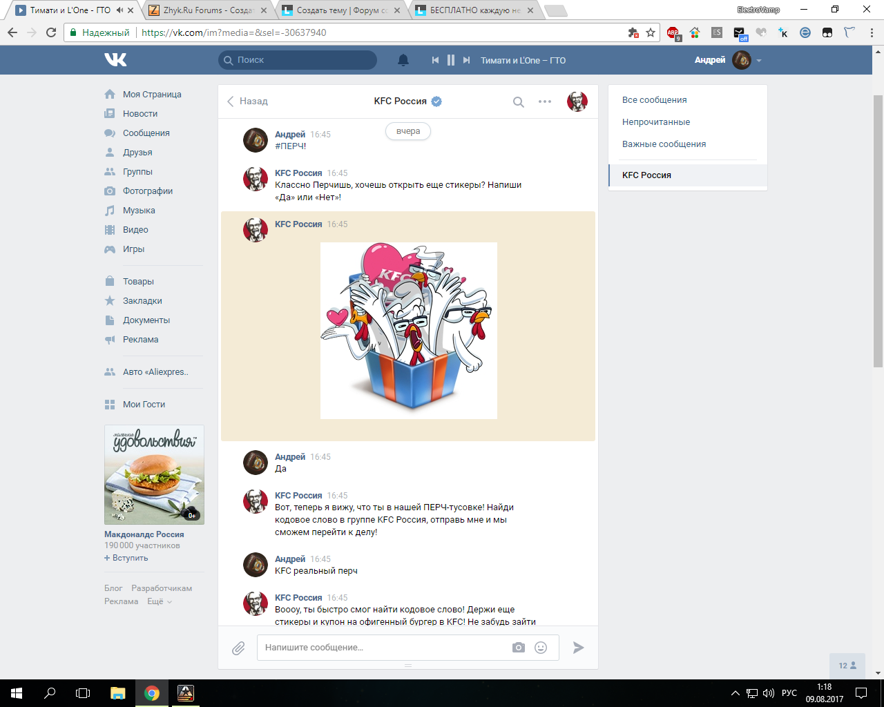Пишем [Ссылки могут видеть только зарегистрированные пользователи. ] #ПЕРЧ!, далее соглашаемся еще на пачку стикеров - ответ на вопрос - KFC реальный перч. Для того, что бы получить еще упаковку - делаем фото с предложенной маской и публикуем в историю.