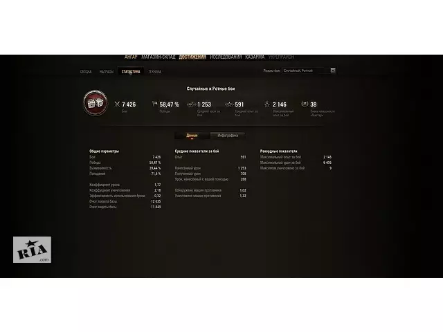 58.5 % , 7.4 к боев ЛР 8к WN8 2245 (синий) в ангаре прем су 122 44 и ис 3 цена 350 грн [