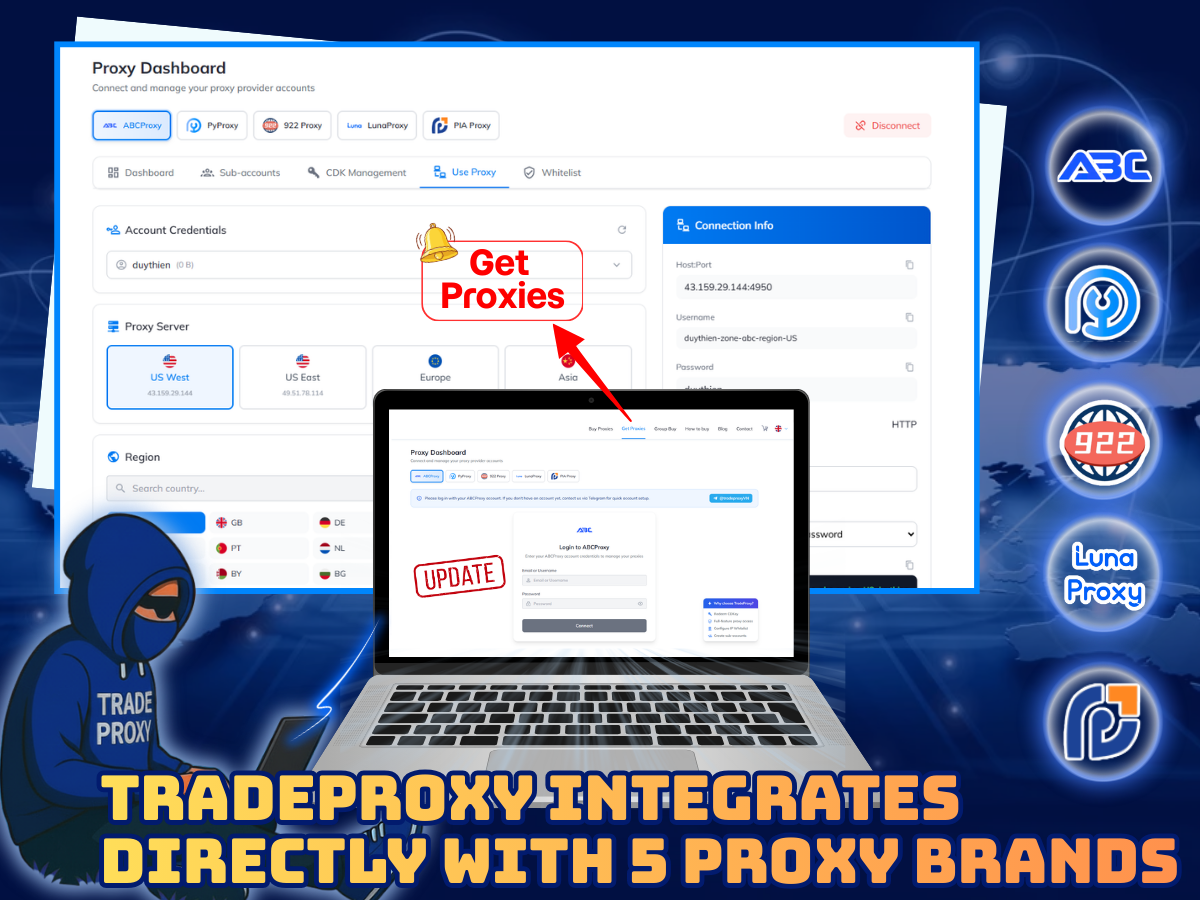 Запуск новой функции GetProxies. Используйте прокси ABC, Luna, Pia, 922 и Py напрямую через TradeProxy