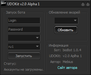 Ну так 1 по желанью, любое название. 2)на этом удоките стоит биобот версий "1.0.9", это и пишешь во 2 строку. 3 это если надо удалить уже созданную настройку. Кстати автор, там выдает ошибку, говорит типо не верно указан путь. Но я сам решил эту проблему, создав папку в UDOKitv2.00 "Settings".