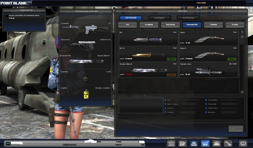 Покупка Хол. оружие Боевое Мачете 1д (1 ед.) в "Point Blank" на сумму 3 руб., сервер PB_Server, персонаж bwzu28b710d