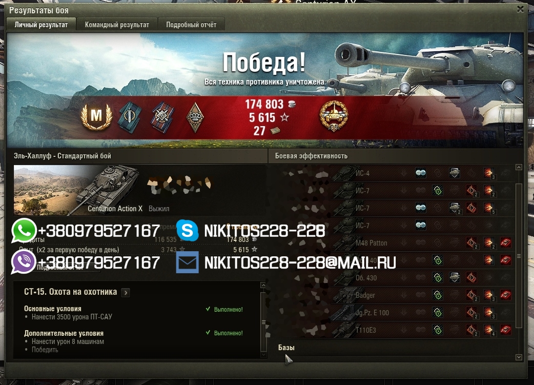 В очередной раз заказал 40 боёв, просто на статистику. выполнил за сутки. Кучу медалек, статистика вся фиолетовая (это при том, что танк непрокачан - грешен). Из 40 боев 36 побед. Рекомендую.