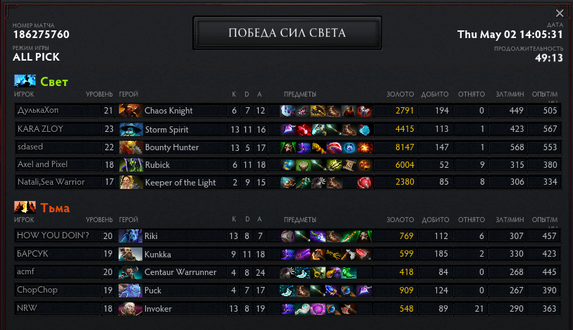 Скриншоты с итогами матчей (by Roch and Xamlo) - Общение и обсуждение Dota 2 - Раздел помощи Пользователям и обсуждений по вопросам Dota 2. Ваши вопросы и просьбы в этом разделе
