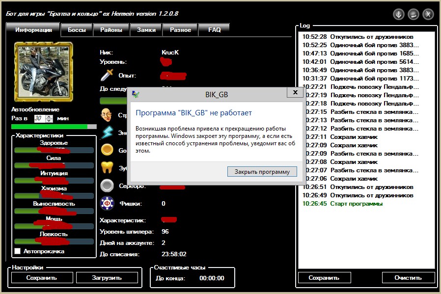 Кстати спросить хотел, бот работает впринципе стабильно, но иногда вылетает вот с такой ошибкой, подскажите из за чего она может появлятся, и как ее исправить если это возможно. Windows 7 Premium x64. Запускаю с правами Админа