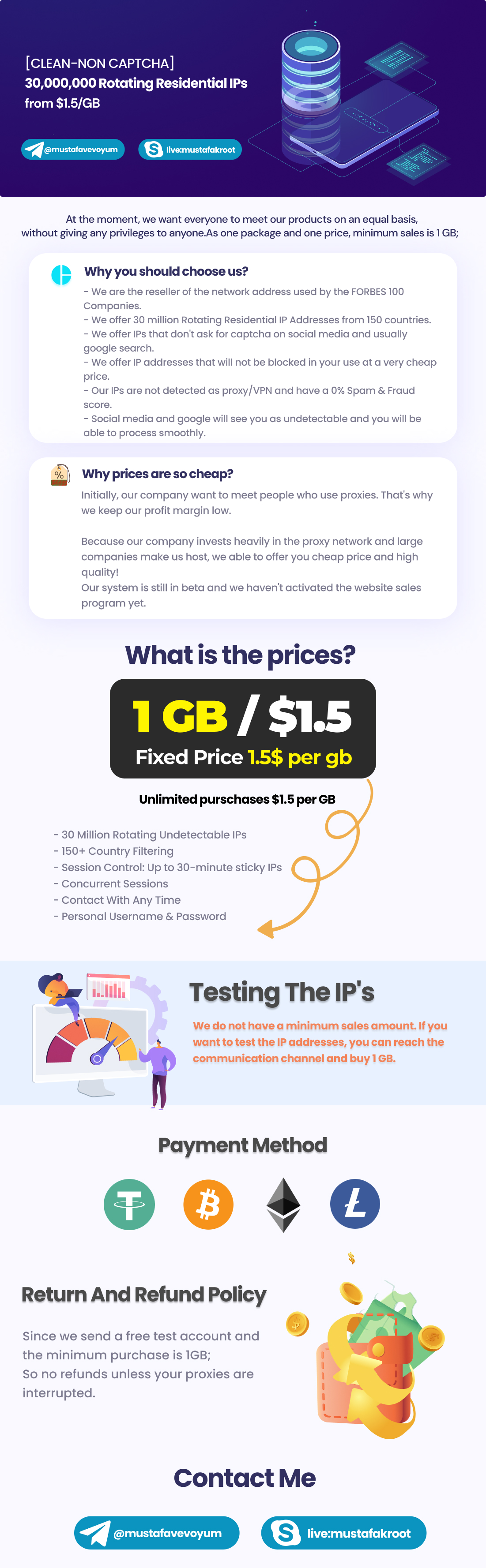 [Clean & Non-Captcha] 30,000,000 Residential IPs from $1.5/GB