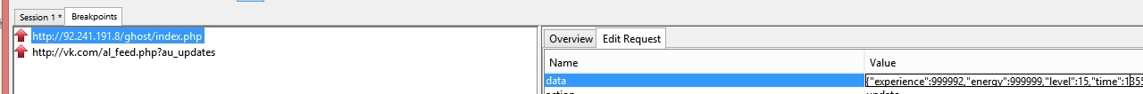 Запускаем Charless, потом приложение, играем до получения нового уровня, потом в Charless смотрим такой адресс http://92.241.191.8, нам нужен запрос такого вида (смотрим вкладку Request а не Response):