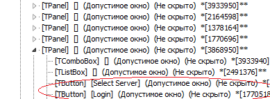 В общем такая ситуация. Имеется программа. Мне нужно найти хэндл 2 элементов(2 кнопок).Что я делаю: я получаю я хэндл окна и...ступор. В нем, как вы видите, 5 дочерних окон tpanel. И только в одном из них находятся 2 кнопки, которые мне нужны(на картинке в самом низу). Как до них добраться? в тупую попытка прописать hnd2:=findwindowex(hnd,0,'TPanel',nil) успехом не закончилась. Заранее спасибо.