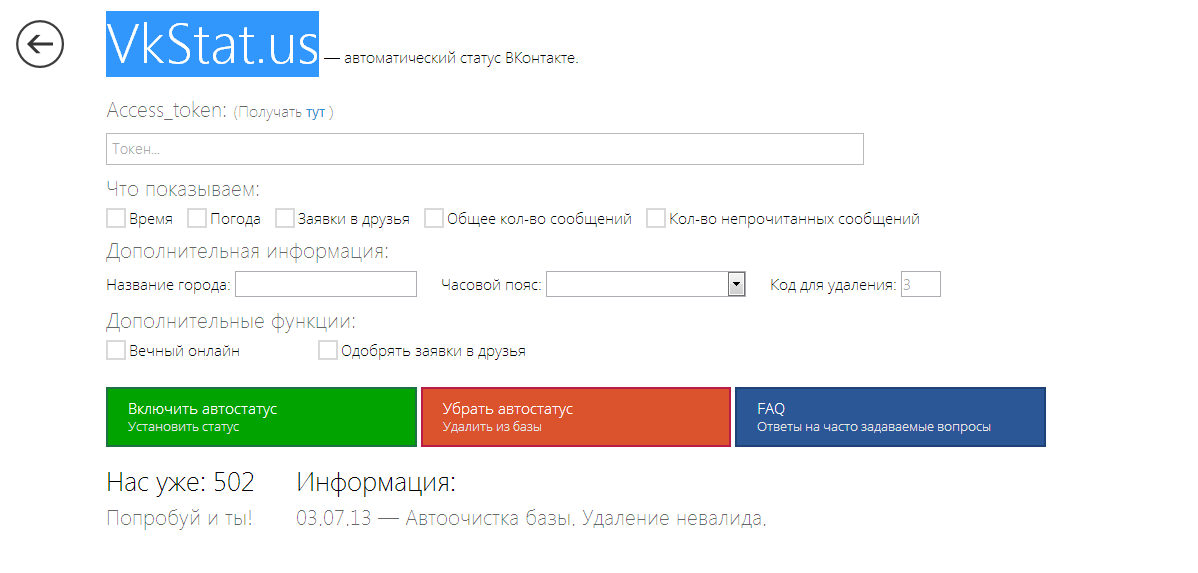 1) http://vkstat.us/ - Авто-статус